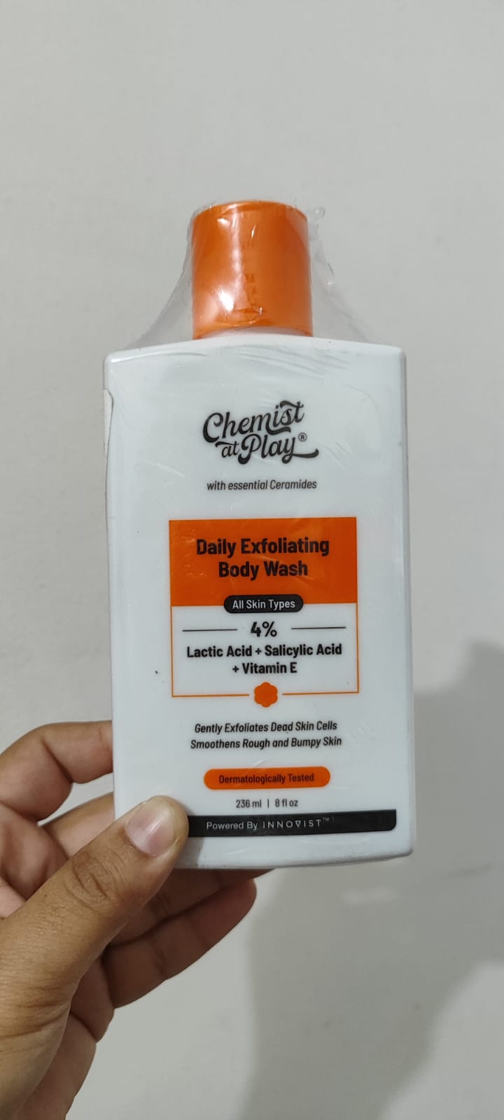 The Chemist At Play Exfoliating Body Wash is a gentle yet effective solution for dull, rough, or bumpy skin. Powered with 1% Salicylic Acid, 2% Lactic Acid, Ceramides, Vitamin E and Murumuru Butter, this body wash for women & men exfoliates dead skin, unclogs pores, fades tan and leaves your skin soft and hydrated. Whether you’re dealing with strawberry legs, body acne, or sun-induced dullness, this tan removal body wash offers visible results with every wash.